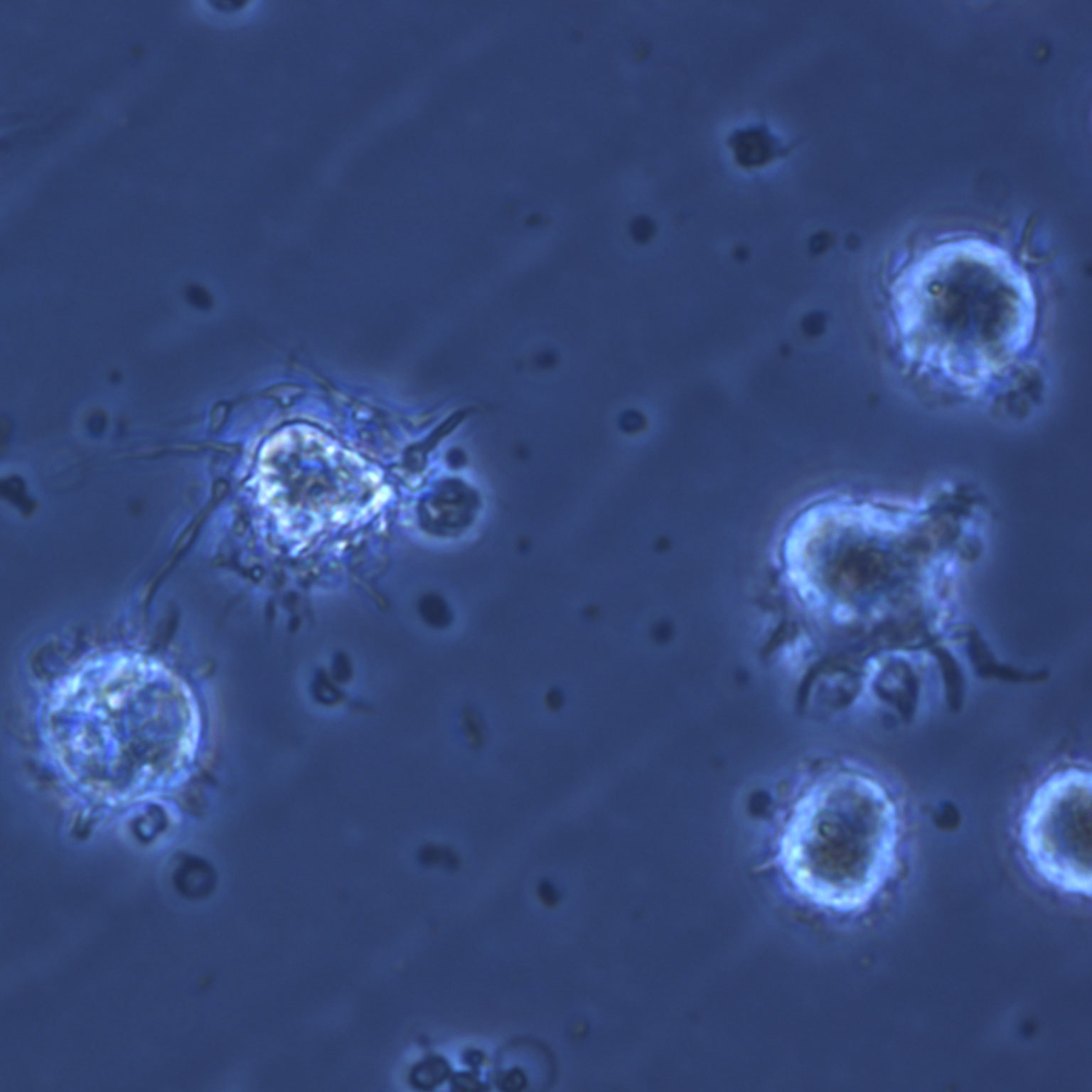 通过淋巴细胞分离液从人、鼠等动物外周血中分离出淋巴细胞,进行药物刺激、流式检测等实验。在对分离出来的淋巴细胞培养过程中添加GM-CSF、IL-4等细胞因子诱导单核细胞分化为树突状细胞(DC),DC体外捕获相关抗原递呈给T淋巴细胞,从而激活T淋巴细胞杀伤肿瘤细胞。