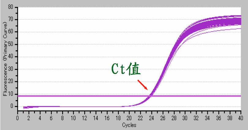 Ct值概念:Real Time PCR扩增过程中,每个反应管内的荧光信号达到设定的阈值时所经历的循环数。( C-代表Cyclet-代表threshold